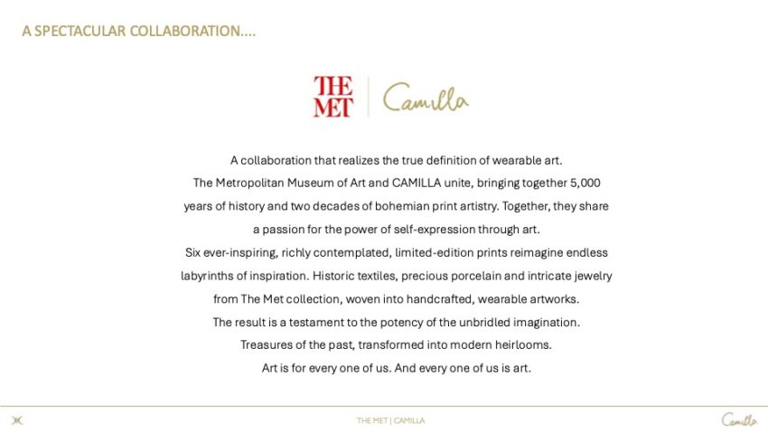 Join us to celebrate the launch of The Met x CAMILLA. A collaboration that realizes the true definition of wearable art.